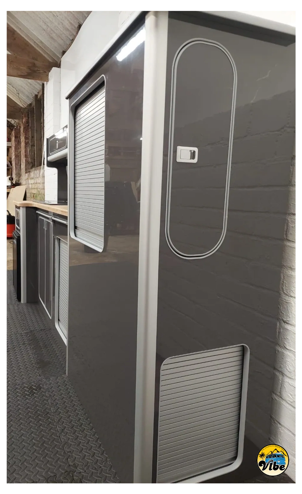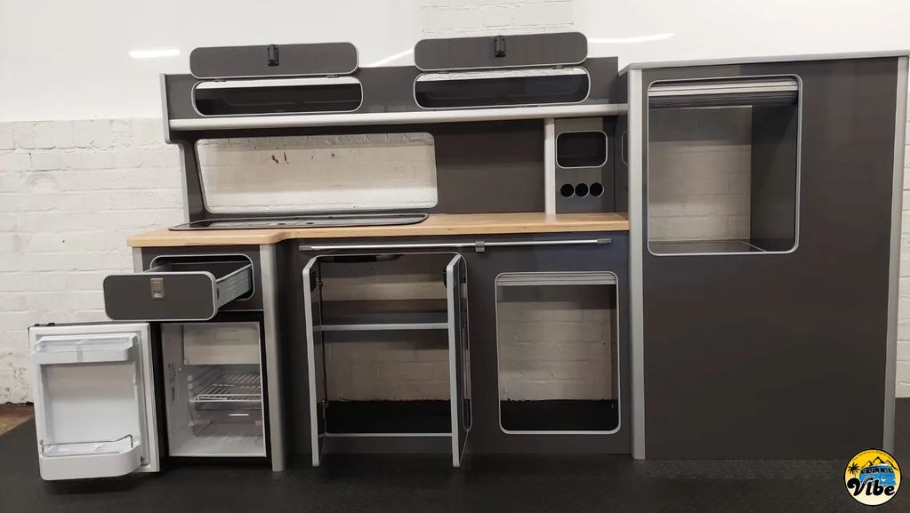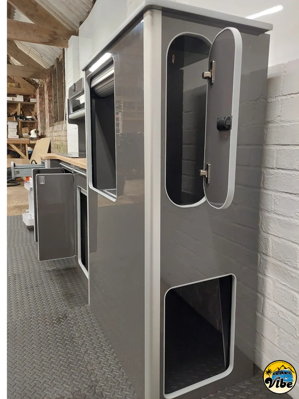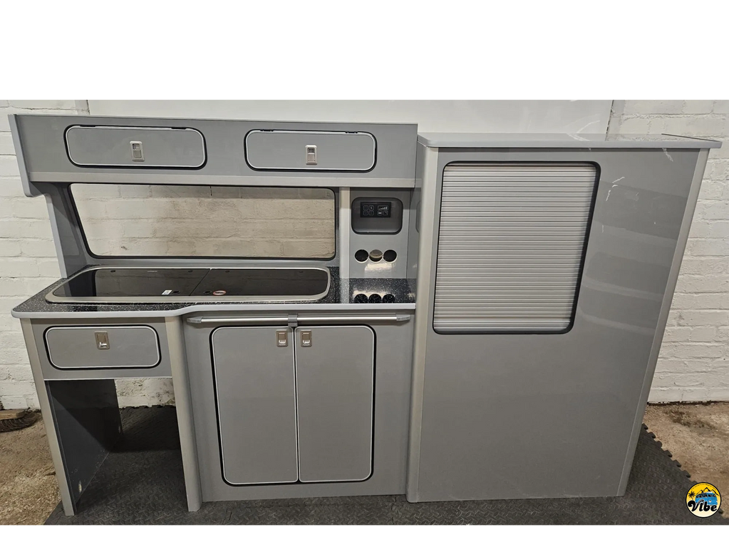The kitchens will fit into short wheel base or long wheel base medium size vans